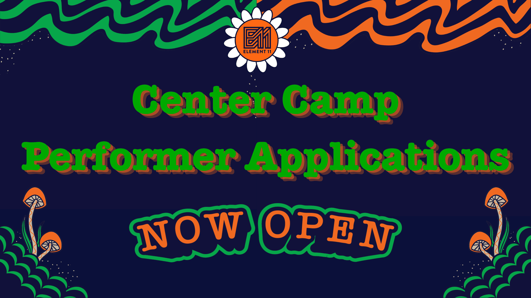 Applications are now open for Center Camp at Element 11, and we want to see what you’ve got. Music, dance, poetry, circus, the weird, the wild… bring it.